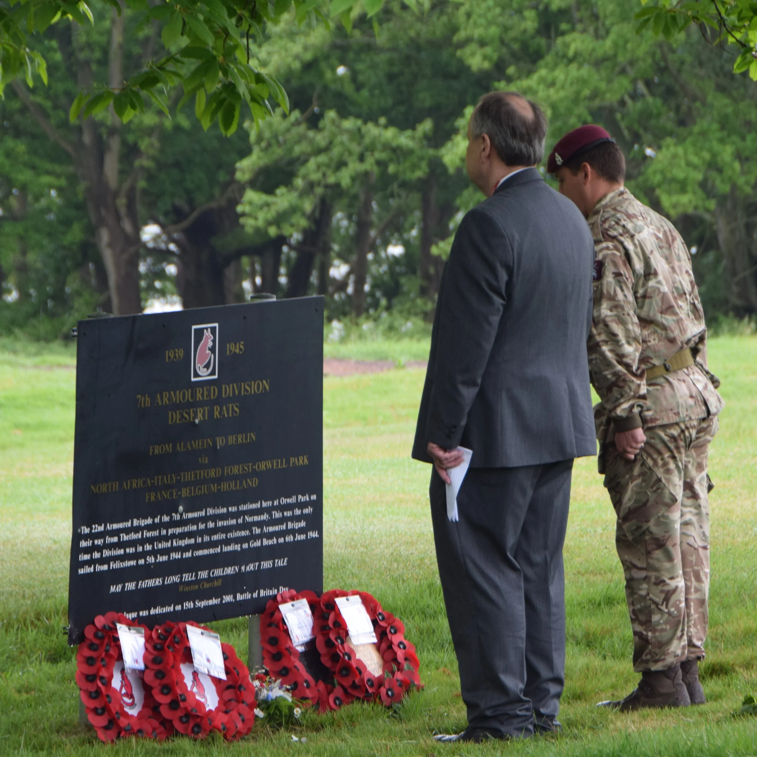 The Service commemorates the time in May 1944 when the Desert Rats moved to Orwell Park School, where the men camped in tents in the school grounds, and the waterproofing of the vehicles was completed before sailing from Felixstowe to Normandy, landing on Gold Beach on the 6th June 1944.